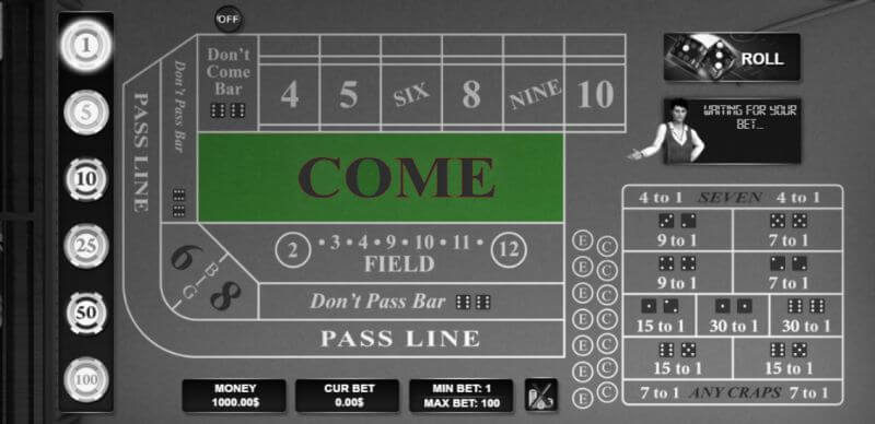 It’s popular among seasoned Craps online players, because it’s the only bet in the game which has zero house edge. This is because the payouts are equal to the true odds of each point being rolled before a 7. You are however required to have already made a Pass Line bet before the Come Out roll.